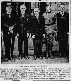 He exemplified the meaning of the Medal of Honor Award. 'The deed must be such that if the person had not performed the heroic deed, no one could fault him.' He died February 11, 1923 and is interred in Winthrop Cemetery." |