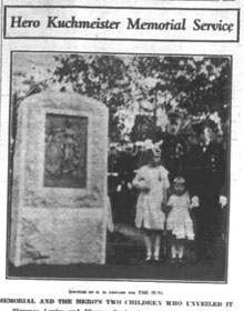 "On this site lived U.S. Marine Corps Hermann W. Kuchmeister, awarded the Congressional Medal of Honor for Heroism and Gallantry for cutting transatlantic cables, Cuba to Spain, under fire of the enemy. He was severely wounded at Cienfuegos, Cuba on May 11, 1895 but continued to work until ordered to stop.