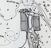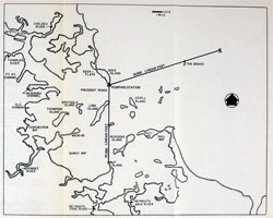 | Unlike the extensive use of landfill required to accommodate a treatment plant on Nut Island, Deer Island had a natural size of 210 acres. But the M&E engineers also had to provide space for a County House of Correction, and take into account an inactive military installation, a 100-foot drumlin right in the middle, and a Boston Harbor Island improvement plan that sought to use a portion of the island for recreational purposes. The major design challenge was that the upgrade to secondary treatment involved the engineers finding room for 12 aeration tanks, each 370 feet long, 8 feet wide, and 15 feet deep, and 48 final settling tanks, each 145 feet in diameter and 14 feet deep. In addition, there needed to be room for the sludge incinerators proposed by Havens & Emerson. |