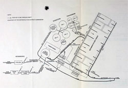 Like option two it called for locating the aeration and final tank facilities northwest of the existing plant but in an asymmetrical arrangement. Prison facilities would be moved to center drumlin. |