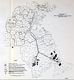 | The New England Division of the U.S. Army Corps of Engineers were authors of another volume in the study, Public Involvement. The goal was to offer an open planning process that sought input from the public. The Corps had had managed the process for similar studies earlier primarily by coordinating meetings with technical subcommittees and other agencies. EMMA would be different, it would expand the involvement to include citizens’ committees from academic, commercial, environmental, industrial, and legislative fields. And to further expand public involvement the Corps would hold public meetings, forums, briefings, workshops and would produce informational bulletins, press releases, and engage with the media. The first public meetings started in late 1973 and would continue in 1975 when the EMMA study was published. The volume of the study on Public Involvement does not mention detail the public meetings other than to say there was “virtually universal opposition.” The idea the satellite sewage treatment plants on the Charles and Neponset Rivers garnered significant opposition, but what received the most pushback was an option that the study would reject, the land disposal of sewage. |