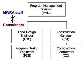 | Both the project Dick Fox led, and the Big Dig had the same three groups, an internal owner/operator team and two external consultant companies, one managing the construction and the other engineering design. The difference was in the management structure. The Big Dig decided to have the two external consulting firms work as a single team reporting to the owner/operator. The MWRA, on the other hand, had both the CM and LDE report independently to its owner/operator group, the PMD. Its' organizational structure mirrored that of the CM and LDE with skilled, experienced people in key roles. Initially something the Big Dig could never do. In addition to oversight of consultants, the PMD retained the sole authority to bid and award contracts, select consultants, authorize change orders, progress payments, and resolve claims. It is interesting to speculate how different the outcome of Big Dig might have been if a fully staffed, experienced owner/operator team had been established at the start of that project. |