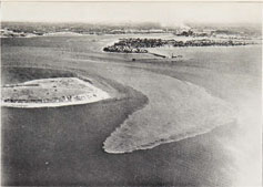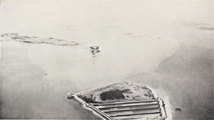 | The Special Commission reconvened in 1935 and published its report on sewage discharge into Boston Harbor in December 1936. For the first time the report included aerial photographs showing clearly visible pollution on the surface spreading over a wide area emanating from the Moon Island and Nut Island outlets, (there were no pictures of the Deer Island outlet because the day the plane was taking pictures the ocean was choppy in the area). |