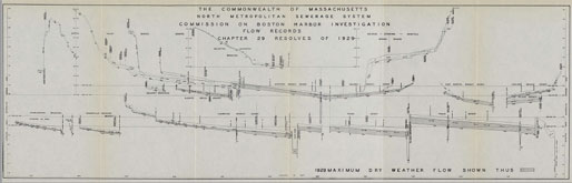 | The report was to be published by the end of 1930. That was same year that officials who wrote the 1889 Board of Health report that set-in motion the construction of the North Metropolitan Sewerage System had used in their projections of population growth to design the sewage system. In 1889, after considering available treatment and disposal options available at the time, they had decided that discharging raw sewage off Deer Island was the best solution. Now 30 years later, current officials had the same opportunity to evaluate those same options again with a look to the of the needs of the metropolitan area 30 years in the future. |