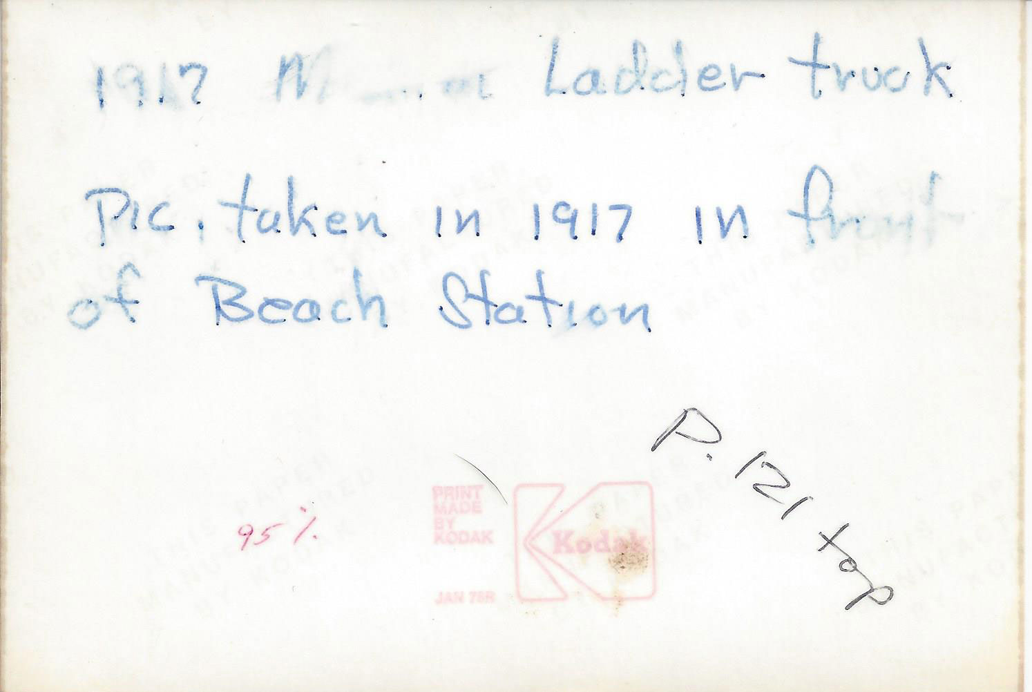 Firemen on Maxim Ladder Truck. Picture take in 1917 in front of Beach Station |