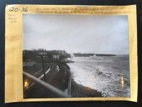 Photo taken from the bridge at the end of Shore Drive at the Highlands end of Shore Drive. Looking down at Railroad Tracks. At that time the point of land in the background was Fort Heath. Photo taken about 1910 |